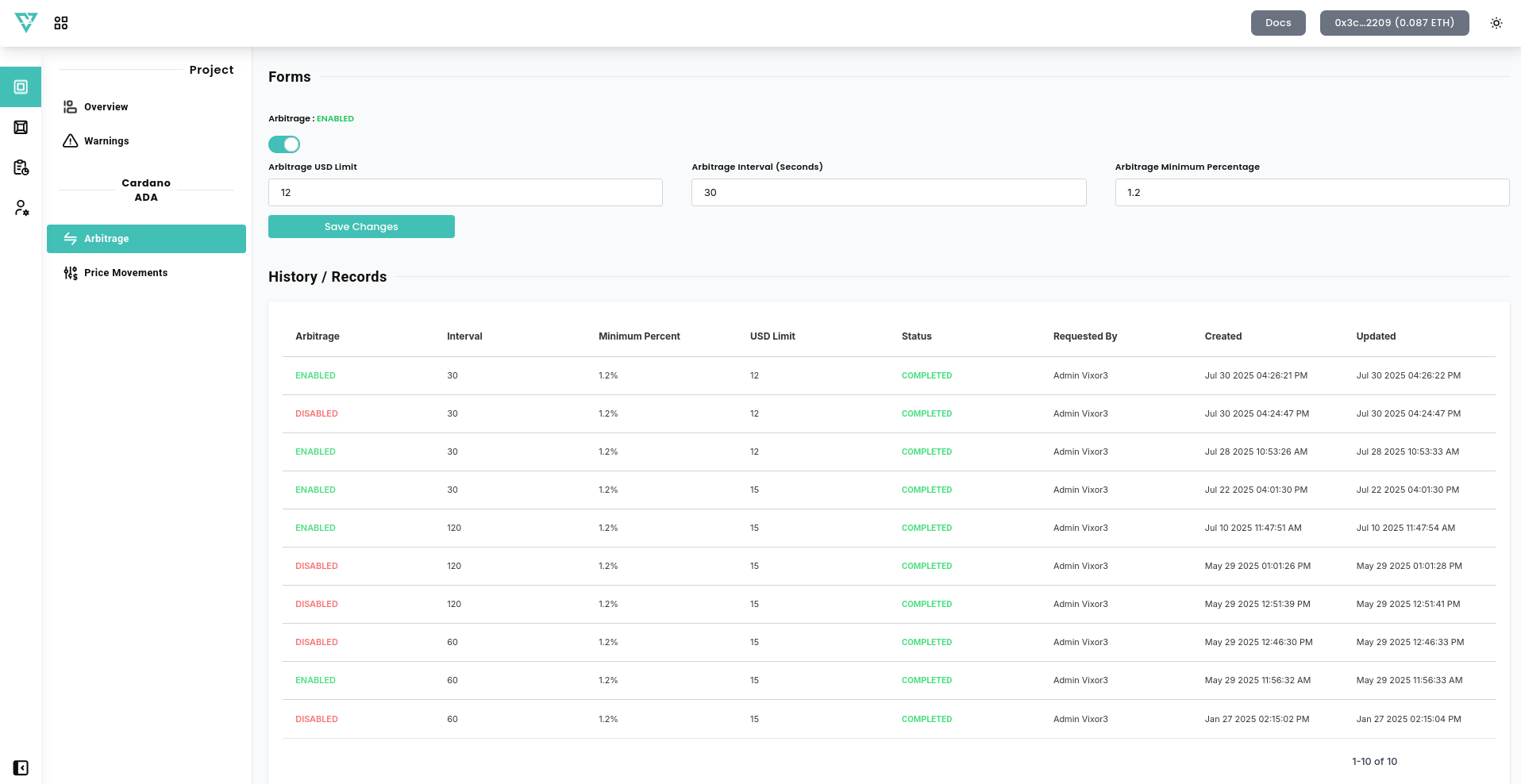 All arbitrage-related actions are logged here. This helps you track when arbitrage triggers occurred and which configurations were in place at the time.