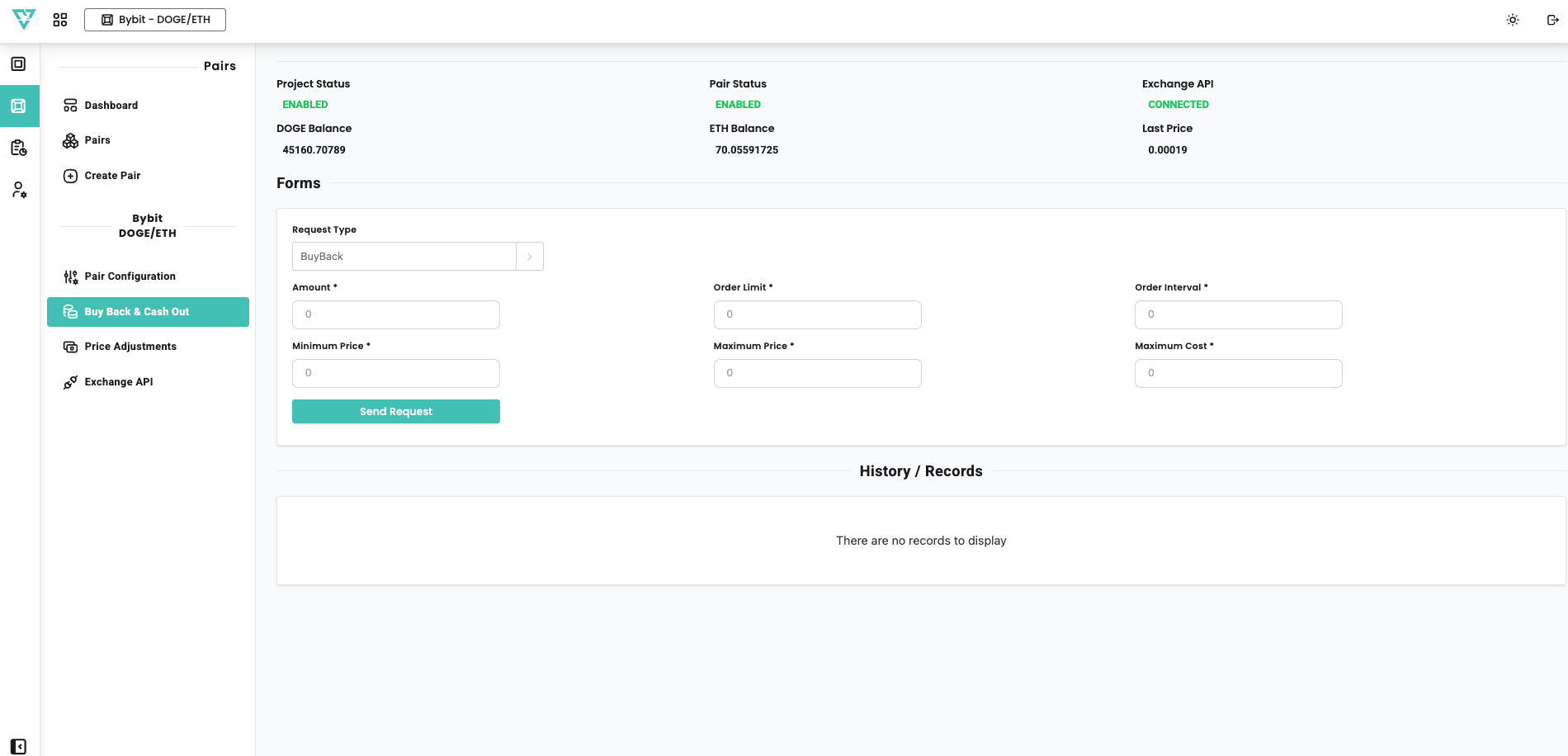 At the bottom of the page, the History / Records section displays all previous buyback or cash-out transactions. This allows you to: