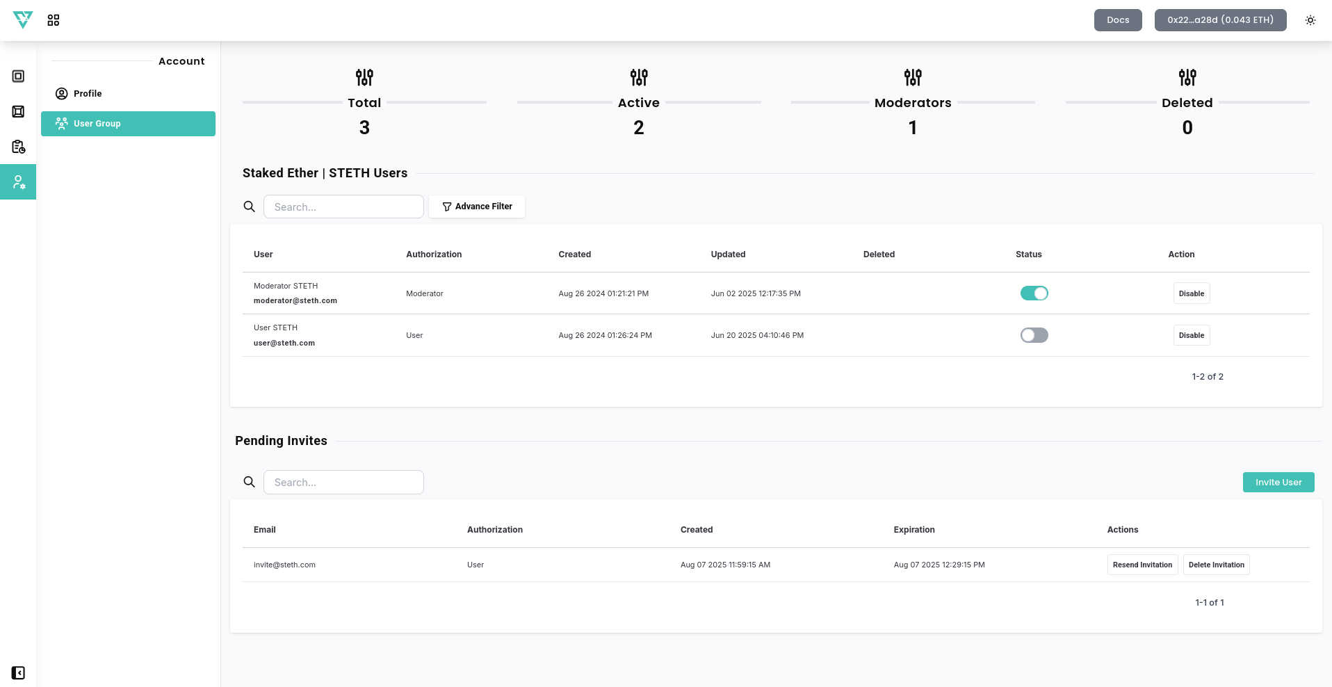 The Invite Users module allows the project owner or admins to invite new users by generating secure invitation keys tied to a specific role — primarily used to onboard moderators or user.