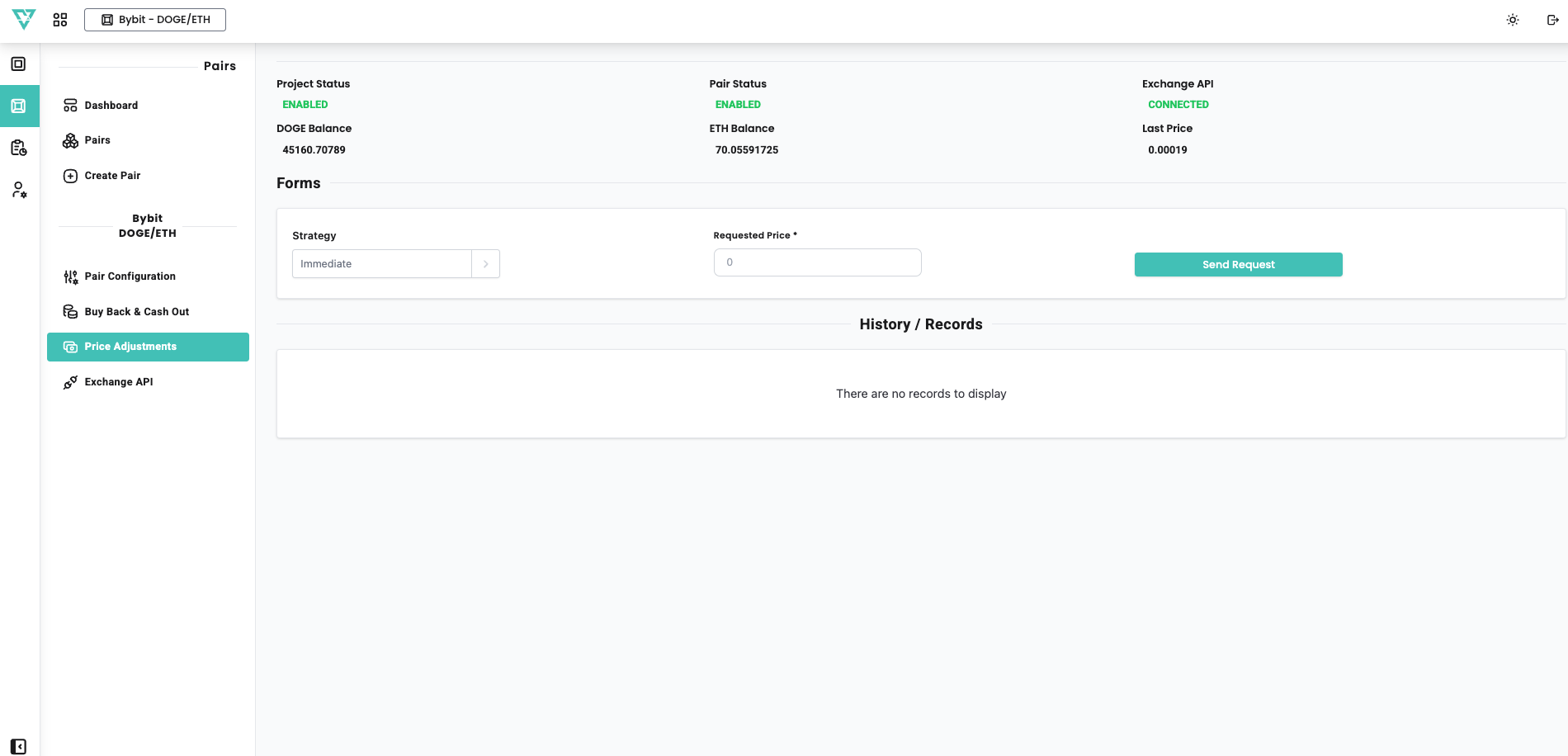 All price adjustment actions are recorded and displayed in the History / Records section. This helps you: