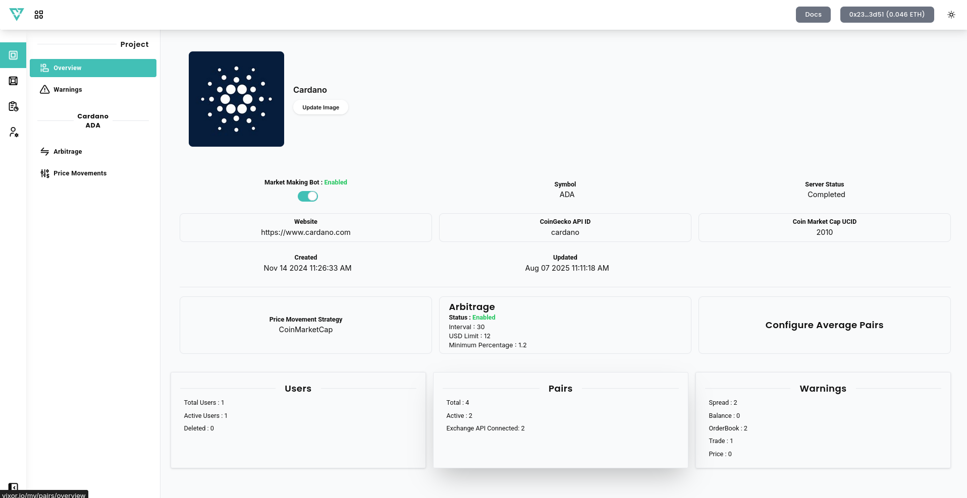 - Market Making Bot: Shows whether the project's MM Bot is currently enabled or disabled.